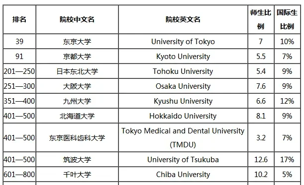 THE日本医学专业世界大学排名: